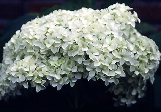 Blüte: sehr große flachrunde Blütenbälle, rahmweiß, im Verblühen: grünlich Mit einem Durchmesser von 20-25cm