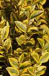 Laub: dunkelgrün, breit gold gelb geränderte Blätter; auch im Winter belaubt