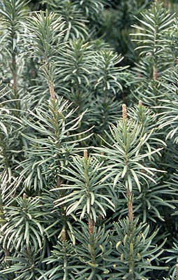Besonderheit: durch die grobe Benadelung wirkt die Pflanze sehr interessant und formschön; einzigartig in der Struktur